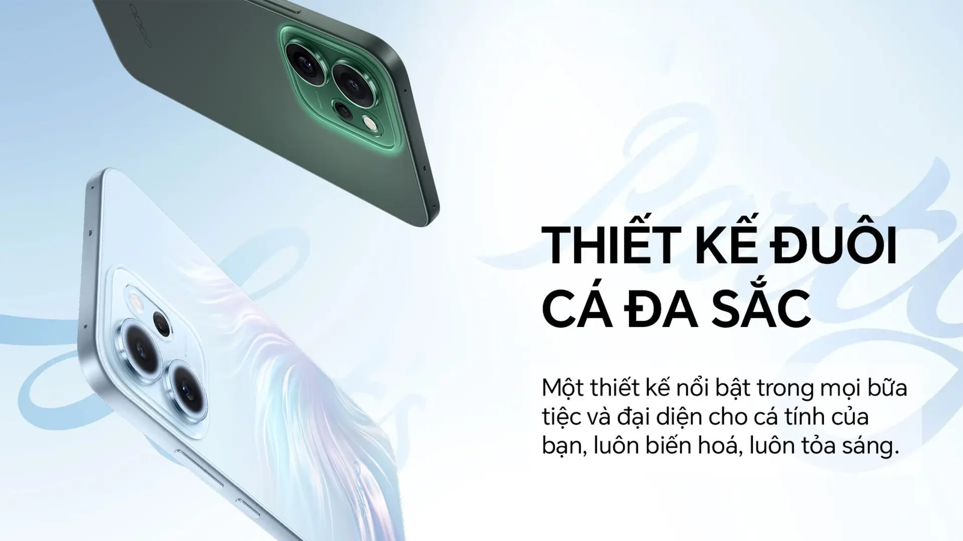 Chiếc điện thoại ra mắt với hai phiên bản màu sắc thời thượng, mỗi màu mang một cá tính riêng. Xanh lá tinh tế, trầm lắng, phù hợp với phong cách tối giản. Trong khi đó, xanh dương trẻ trung, năng động nổi bật nhờ hiệu ứng chuyển màu Gradient Aura Design quanh cụm camera – tạo nên điểm nhấn cuốn hút cho tổng thể thiết kế.