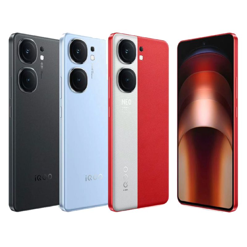 iQOO Neo9 mang đến 3 màu sắc bao gồm Đỏ trắng, Đen và Xanh Dương sang trọng và đẳng cấp. Đối với tùy chọn màu Đỏ trắng, mặt lưng được làm từ da, còn đối với 2 tùy chọn Đen và Xanh dương còn lại có mặt lưng làm từ kính.