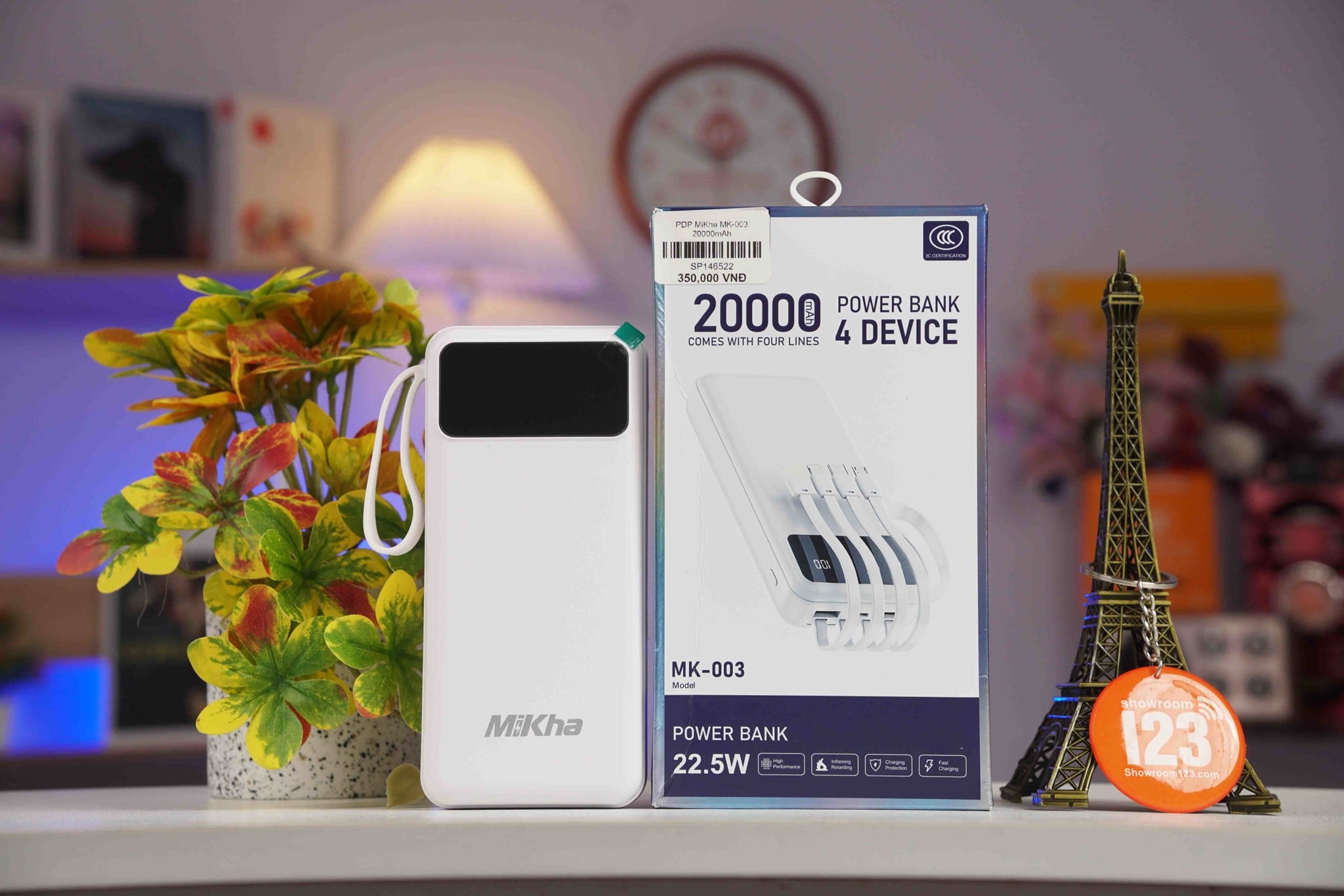 Sạc Dự Phòng Mikha MK-003 20000mAh: Sạc Nhanh 22.5W, Tích Hợp 4 Cáp Tiện Lợi