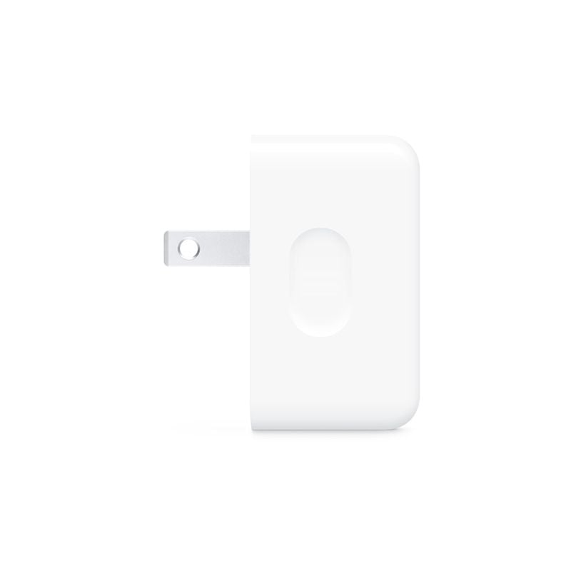 Củ sạc nhanh 35W Apple sở hữu thiết kế nhỏ gọn nhẹ với 2 cổng Type C đặt cạnh nhau. Đặc biệt hơn, phần cắm với ổ điện của củ sạc được làm chắc chắn cùng khả năng gấp lại gọn gàng khi không dùng dễ dàng và siêu tiện lợi.
