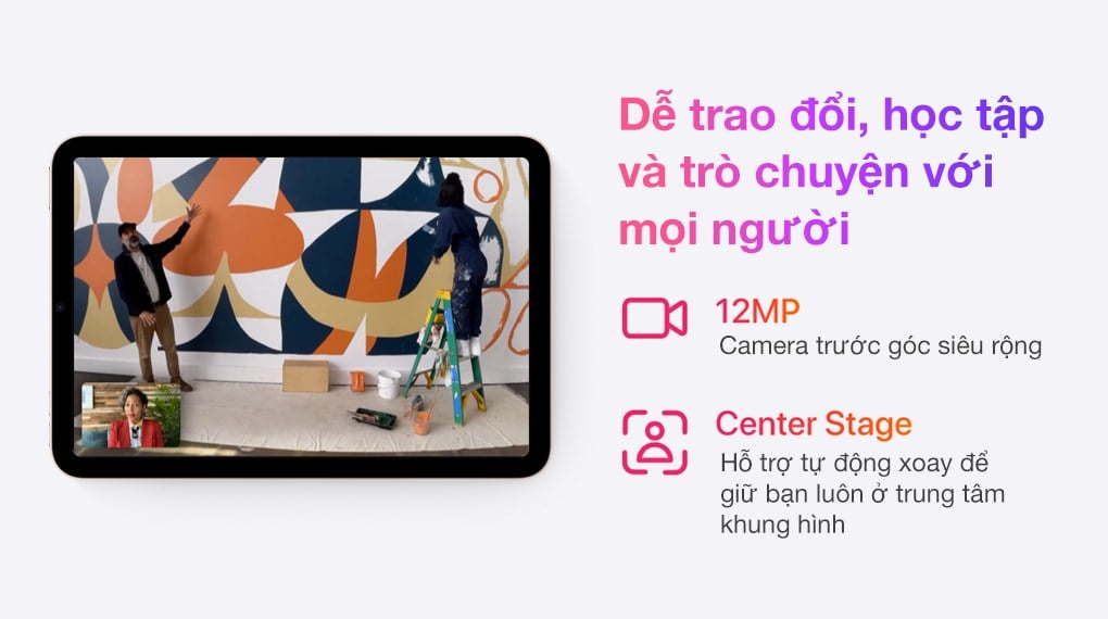 Hơn nữa camera trước còn hỗ trợ tính năng Center Stage giúp cuộc gọi trở lên hấp dẫn hơn khi bạn có thể di chuyển trong quanh khung hình, máy ảnh sẽ tự động xoay để giữ bạn luôn ở trung tâm khung hình.