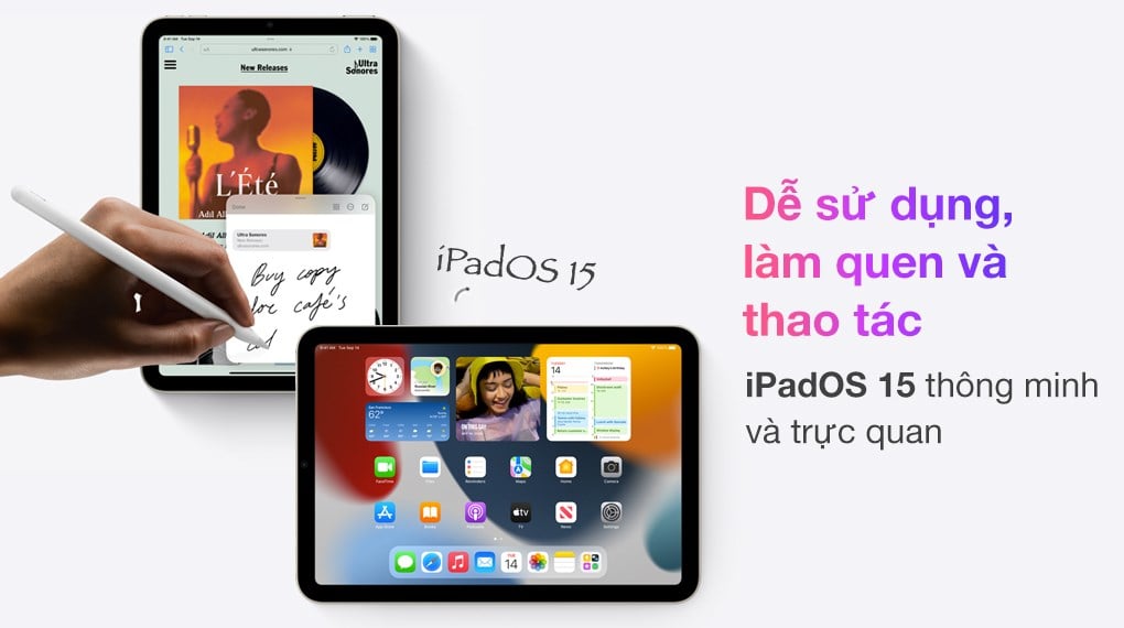 Thiết bị chạy hệ điều hành iPadOS 15 tập trung về tiện ích, tận dụng tối đa nhất không gian màn hình của iPad, giao diện trực quan hơn, đa nhiệm thông minh hơn và bảo mật tốt hơn cho người dùng cá nhân.