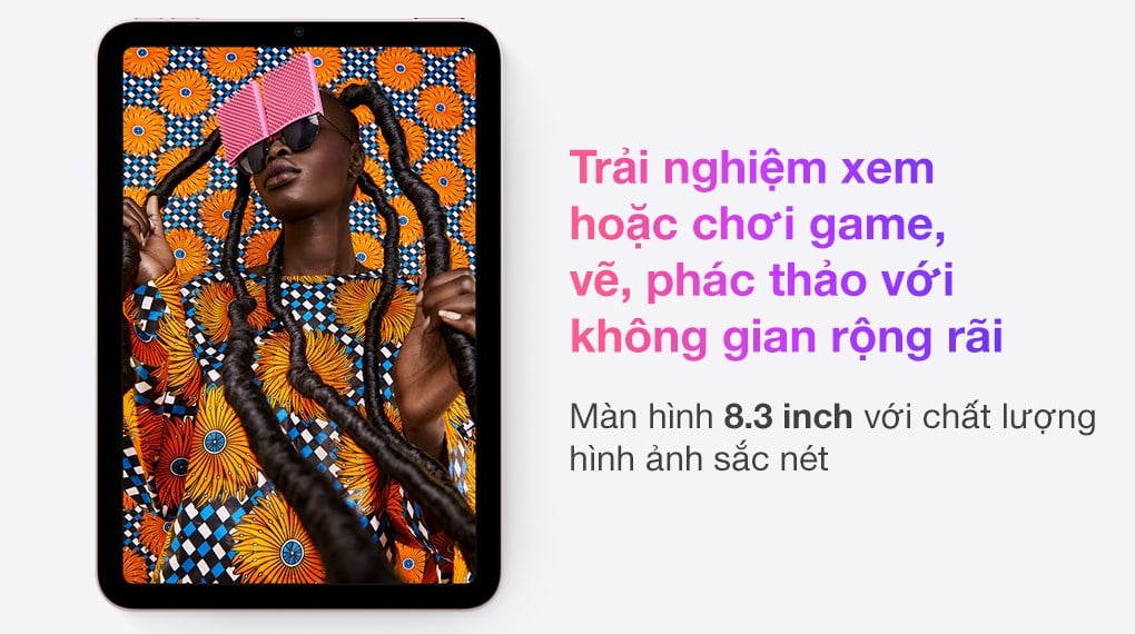 Trang bị kích thước màn hình 8.3 inch lớn hơn so với các phiên bản iPad mini trước, nhưng iPad mini 6 vẫn rất gọn gàng vì viền màn hình của máy đã được thiết kế mỏng đều bốn cạnh, thiết bị vẫn rất tiện để mang theo giải trí, làm việc mọi nơi, mọi lúc.