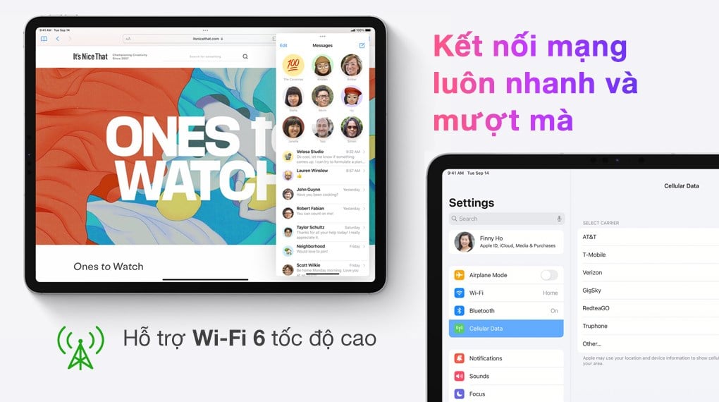 iPad mini 6 trang bị kết nối WiFi 6 cho tốc độ giao tiếp kết nối cực nhanh và ổn định, truyền tải dữ liệu tốc độ cao không tốn nhiều thời gian chờ.