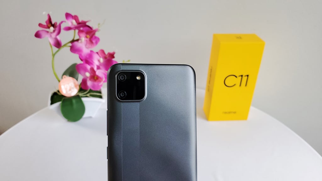 Mặt sau của Realme C11 hiện diện camera kép được xếp thành cụm vuông sang trọng & bắt mắt, khác hoàn toàn so với thiết kế cụm camera dọc của các dòng máy trước. Hai camera này có thông số như sau: ống kính chính có độ phân giải 13MP kèm tính năng chụp góc rộng và lấy nét tự động PDAF; ống kính phụ có độ phân giải 2MP khẩu độ f/2.4 cho phép người dùng chụp ảnh chiều sâu. Cụm camera vuông còn có thêm đèn flash LED cho phép người dùng chụp đêm hiệu quả.