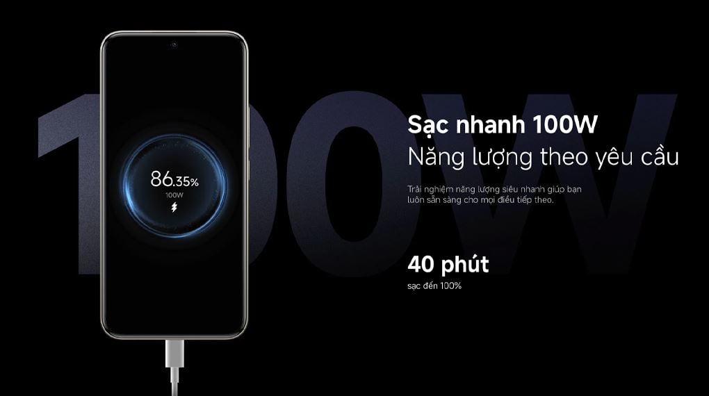 Sạc siêu tốc 100W: Tốc độ nhanh nhất dòng Note, sạc đầy chỉ trong tích tắc.