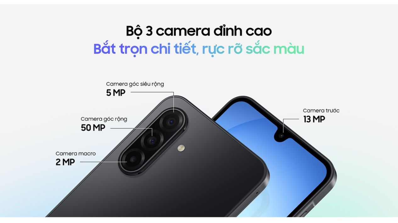 - Camera sau: 50MP + 5MP + 2MP