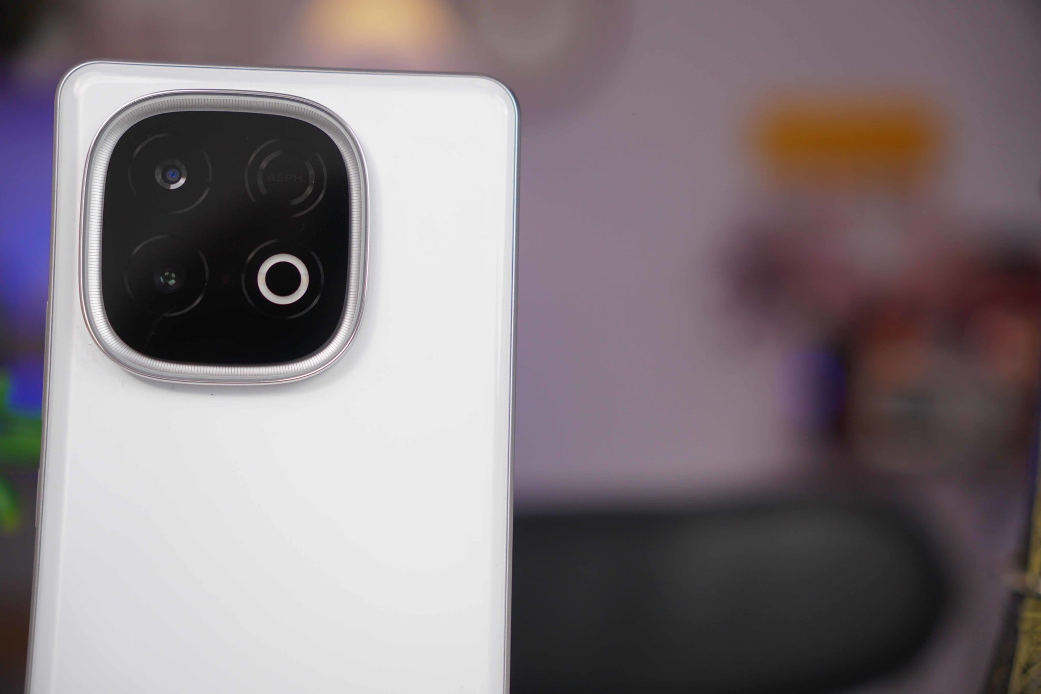 Mặt lưng của máy có hiệu ứng hơi bóng nhẹ dưới ánh sáng, nhìn tương đối nổi bật mà vẫn giữ được sự tinh tế. Cụm camera hình vuông lớn nằm lệch về phía trái khá gọn gàng, không bị quá lồi. Tổng thể vẫn khá mỏng dù mang trong mình viên pin lớn, độ dày chỉ khoảng 8,09 mm nên cầm nắm thoải mái và không bị cấn tay.